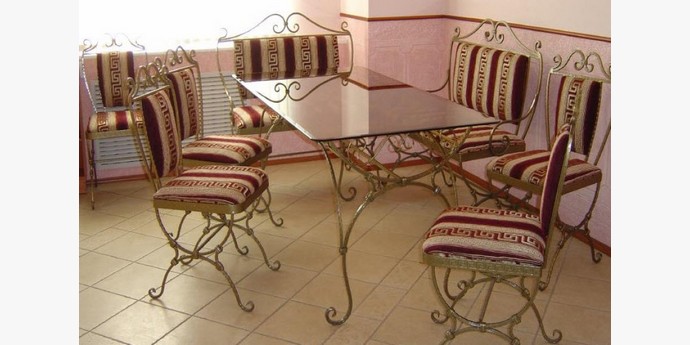 Изысканные кованые изделия подчёркивают утончённый вкус обладателя. Вопреки этому, они берегут в себе тепло рук мастера и древнюю энергию огня, на века застывшие в витиеватых узорах. Благодаря ковке металл получает лёгкость и прочность, отличные качества для мебели. Кузнечные изделия прекрасно сочетаются с тканью, деревом и пластиком.