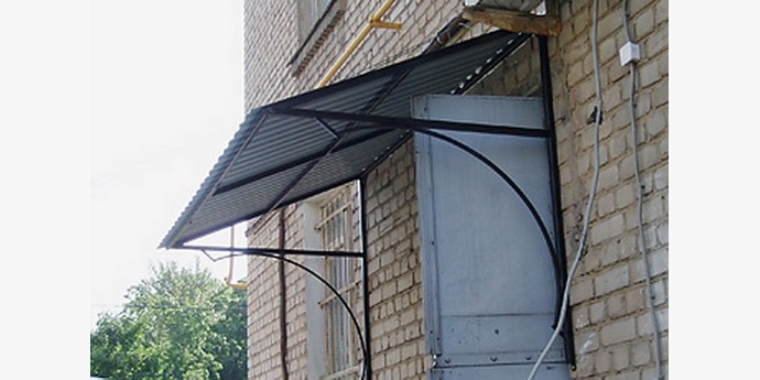 | Козырьки металлические прямые | от 2 000 руб. / м2 | Каркас труба профильная 40х20мм , наполнение на выбор (металл, профнастил, поликарбонат), покраска каркаса на выбор, характеристики подбираются индивидуально. Окончательная стоимость зависит от объема и монтажных работ. |