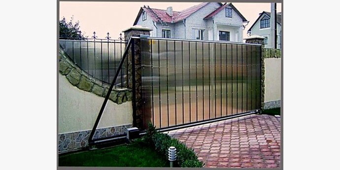 Преимущества распашных ворот – самая надежная конструкция, поскольку самая простая. Пожалуй, самой сложной автоматикой можно назвать откатные ворота. Но у них есть несомненное достоинство, не присущее другим видам ворот, — открывать их можно на какое угодно расстояние, а это бывает очень полезно. Плюс: их внешний вид наиболее поддается разнообразию. Ворота могут быть как глухими, так и решетчатыми, почти прозрачными. Могут быть обшиты или украшены коваными элементами. Также не требуют дополнительного пространства для своего открытия.