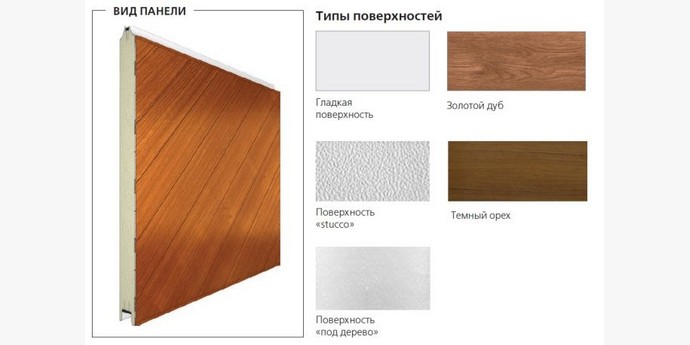 Секционные ворота состоят из скрепленных сэндвич-панелей, каждая панель изготовлена из оцинкованной стали ( или алюминия), которая обработана специальным покрытием, что обеспечивает надежную защиту к коррозии и к воздействию различных механических повреждений. А внутри заполнена специальным материалом — пенополиуретан, который отлично удерживает тепло и обладает прекрасной воздухонепроницаемостью.
