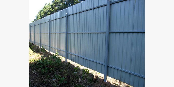 | Забор из профнастила оцинкованного | от 1 400 руб. / м.п. | Столбы труба 60х60 мм, каркас труба 40х20 мм, наполнение профлист СС-10 оцинкованный, покраска каркаса серый/черный цвет. Окончательная стоимость зависит от объема и монтажных работ. |